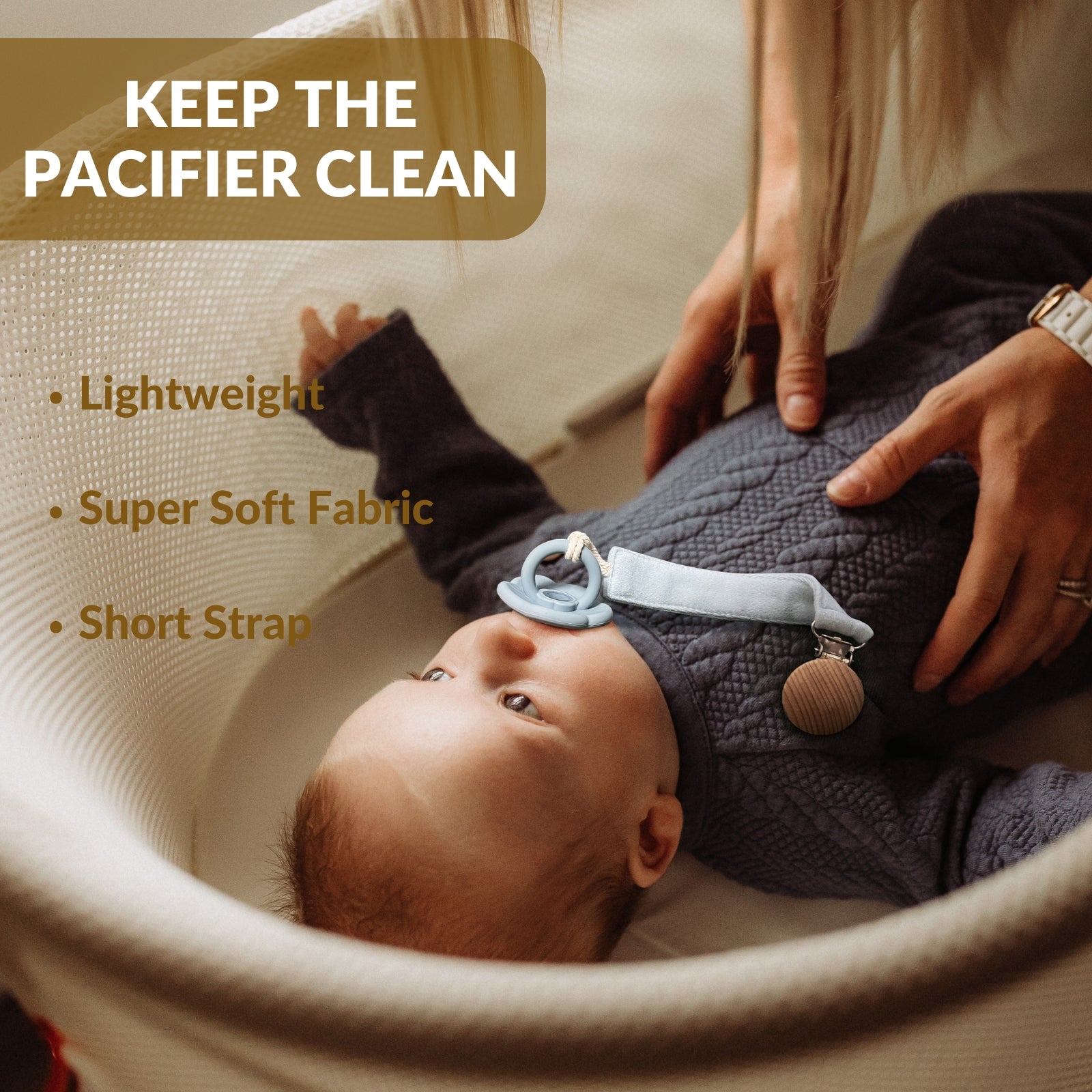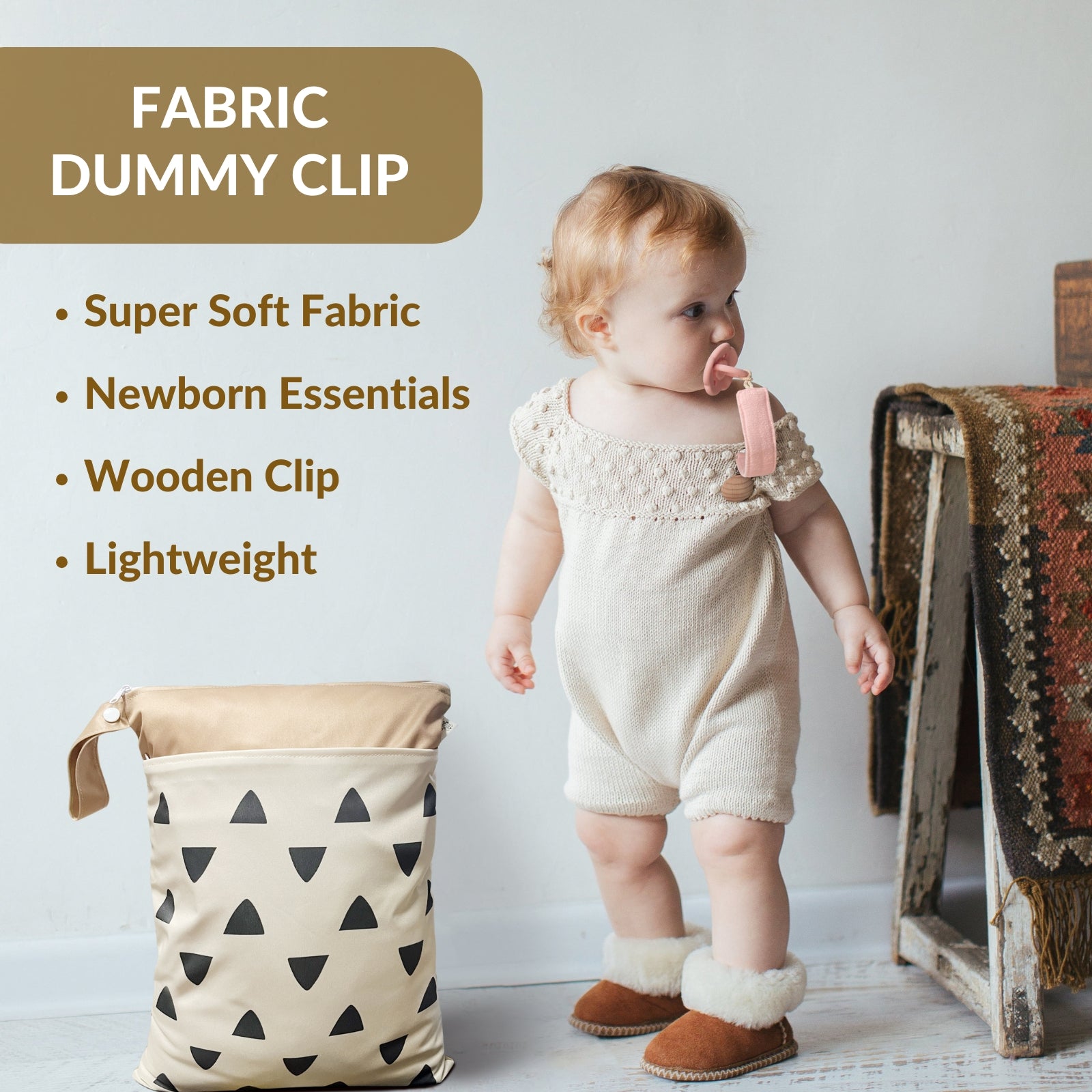 Keep your baby's pacifier close and clean with these super soft fabric pacifier clips. The 2 pack set features lightweight, travel-friendly straps made from gentle fabric that won't irritate your little one's delicate skin. The short straps attach securely to clothing, keeping the wooden pacifier clip within reach. These clips help prevent pacifiers from getting lost or dropped on dirty surfaces, ensuring they stay clean for your baby. The simple design and neutral colours complement any outfit. Prioritise your child's comfort with these essential newborn accessories.